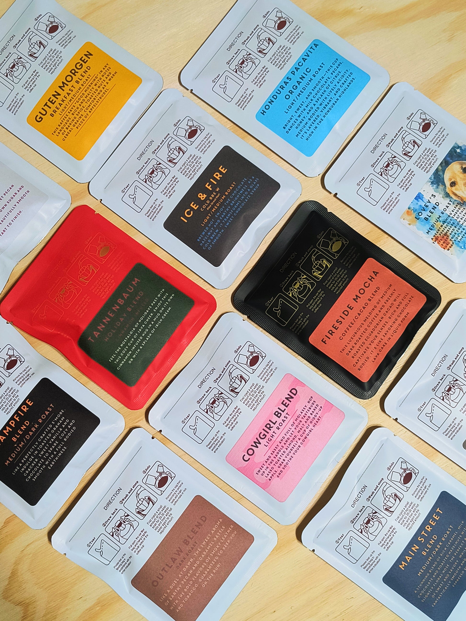 Enjoy for yourself or give a gift that gives for a while. Our 12 Cups of Christmas Bundle scores you 12 single serve, pour over pouches of twelve ground coffees. Roasters choice on this bundle will score you a combo of old favorites and exclusive, never released specialties, and of course, a guaranteed Tannenbaum Blend for Christmas morning.