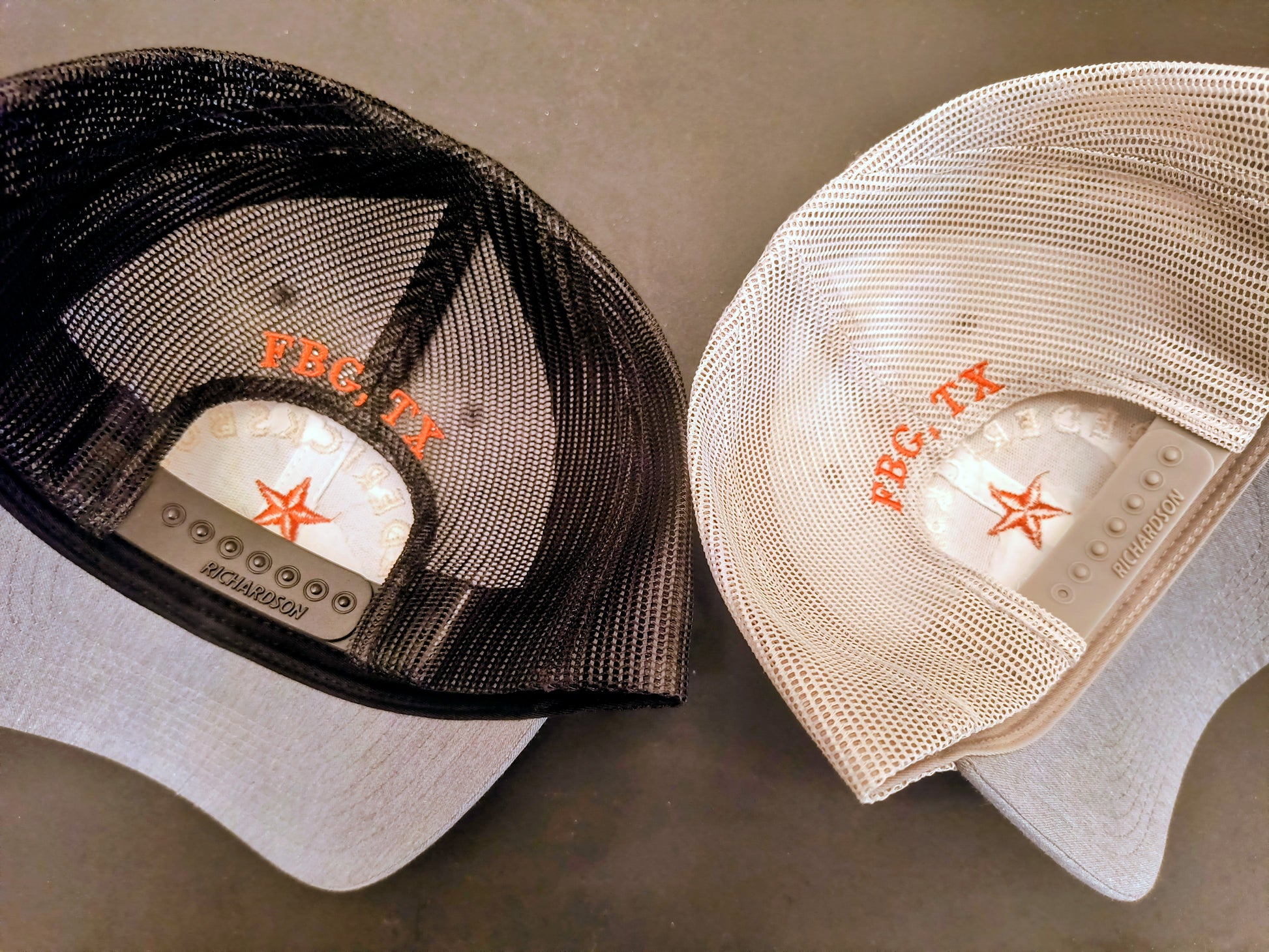 Original 112 Trucker with snapback. Embroidered Fredericksburg Coffee Co logo on front and FBG,TX on back.